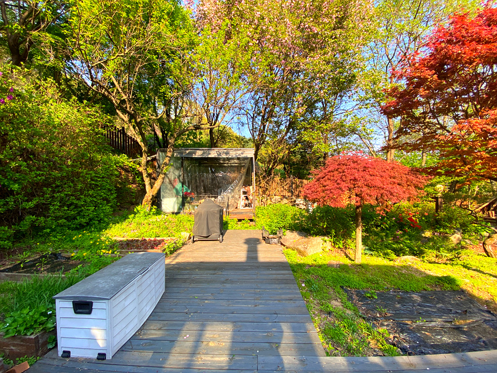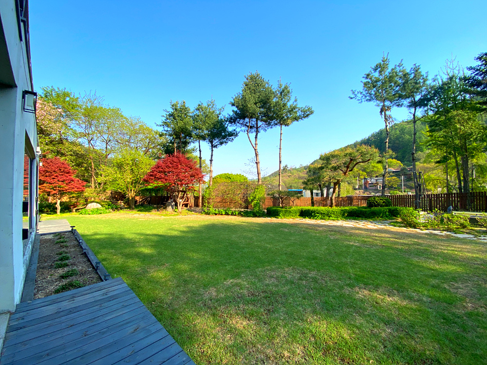 - 이 주택은 남향으로 자리해 있어 거실과 2층에서 산과 세월천의 아름다운 풍경을 감상할 수 있습니다. 넓은 정원에는 잔디마당과 텃밭, 산책로, 그리고 가제보가 마련되어 있어 가족과 함께 자연 속에서 여유로운 시간을 보내기에 안성맞춤입니다.