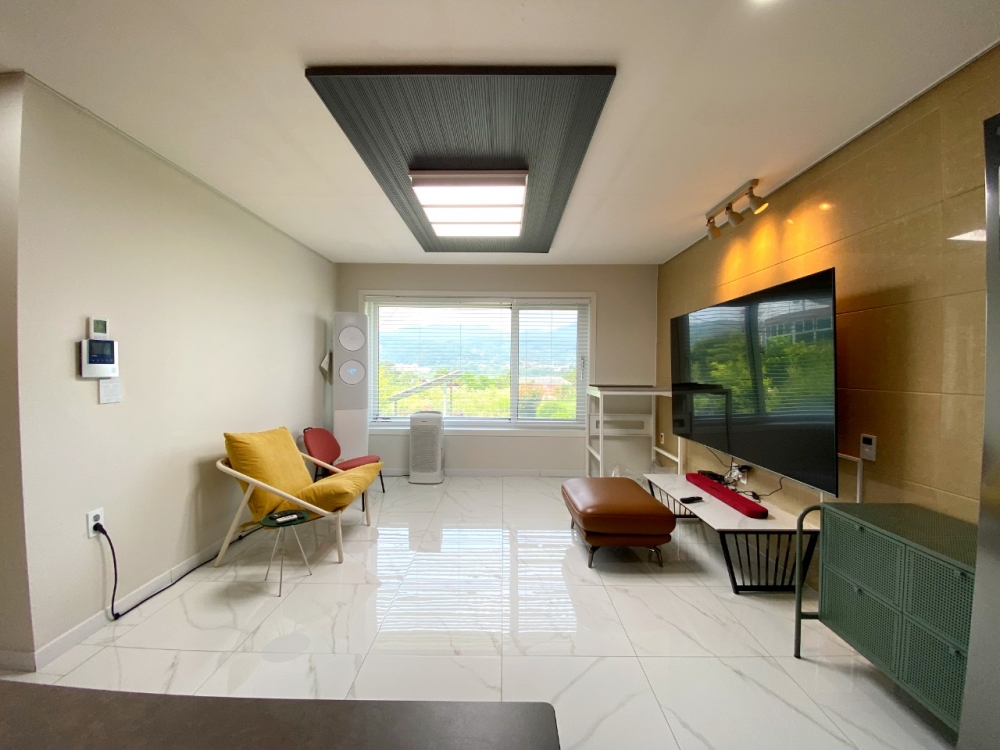 옵션으로는 스탠드 에어컨 1대와 벽걸이 에어컨 2대(그중 1대는 냉난방 기능)가 설치돼 있습니다.